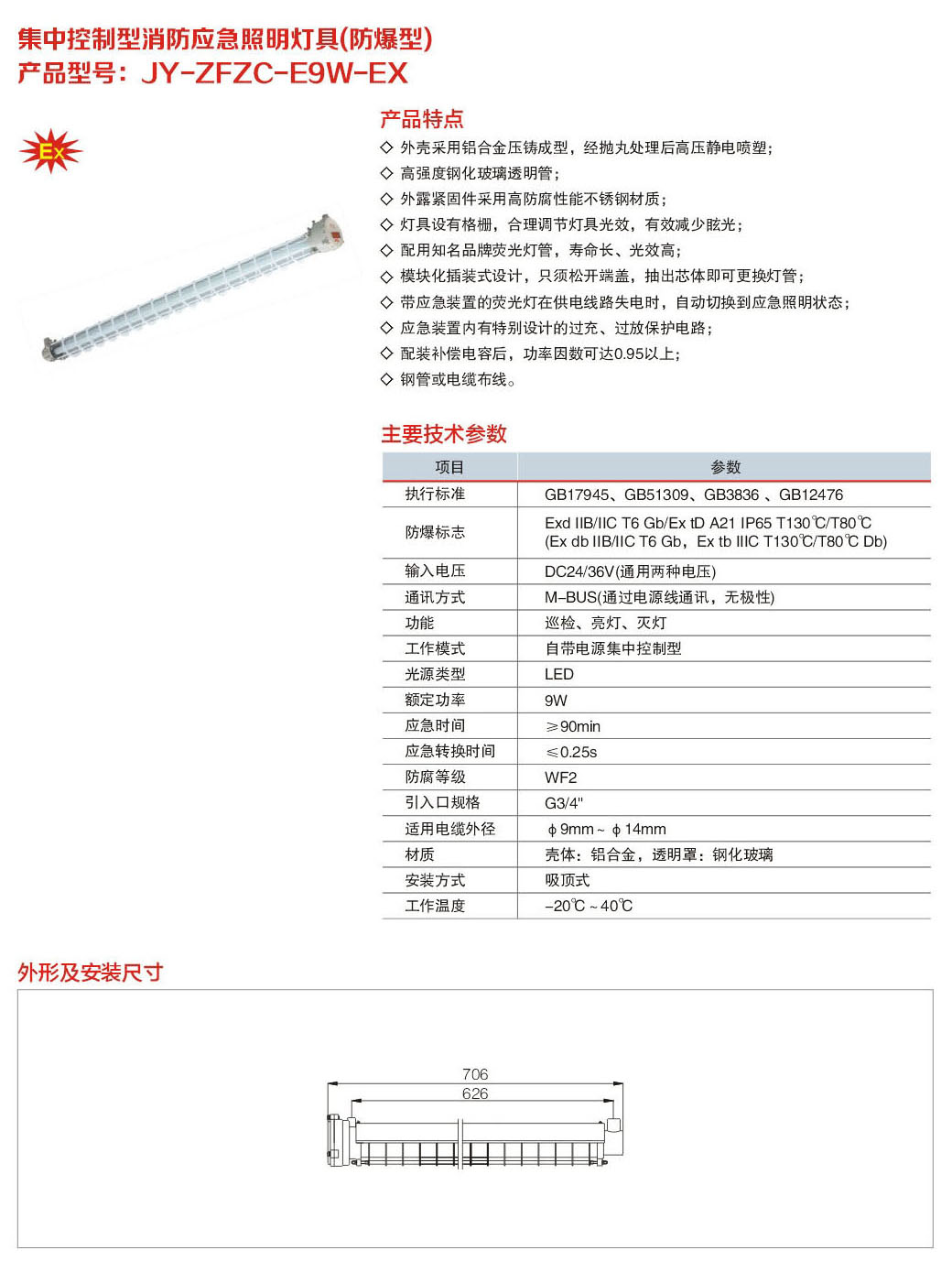 JY-ZFZC-E9W-EX集中控制型消防應急照明燈具(防爆型)